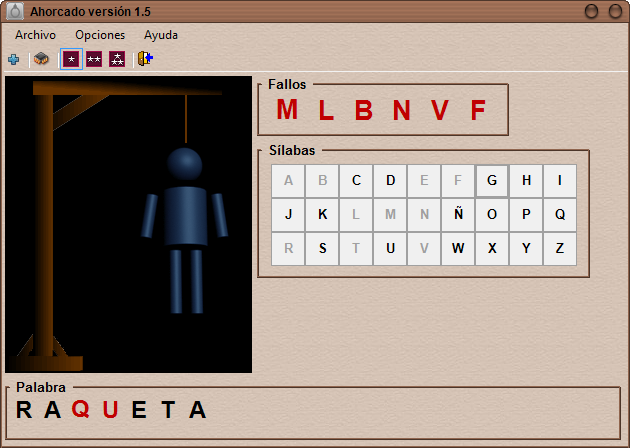 Cuando se producen demasiados fallos, se dibujará una figura con el hombre ahorcado y perderán.