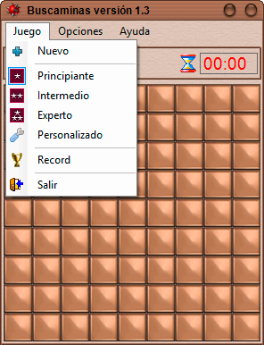 El juego te permitirá jugar en 3 categorías: Principiante, Medio y Experto, y un nivel personalizado donde puedes elegir el alto y el ancho del tablero, y también la cantidad de minas a descubrir.
