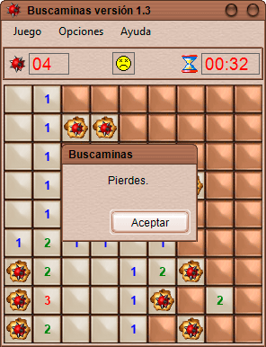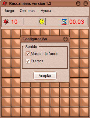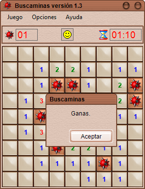 Además ofrece un indicador de tiempo transcurrido y de la cantidad de minas ocultas.